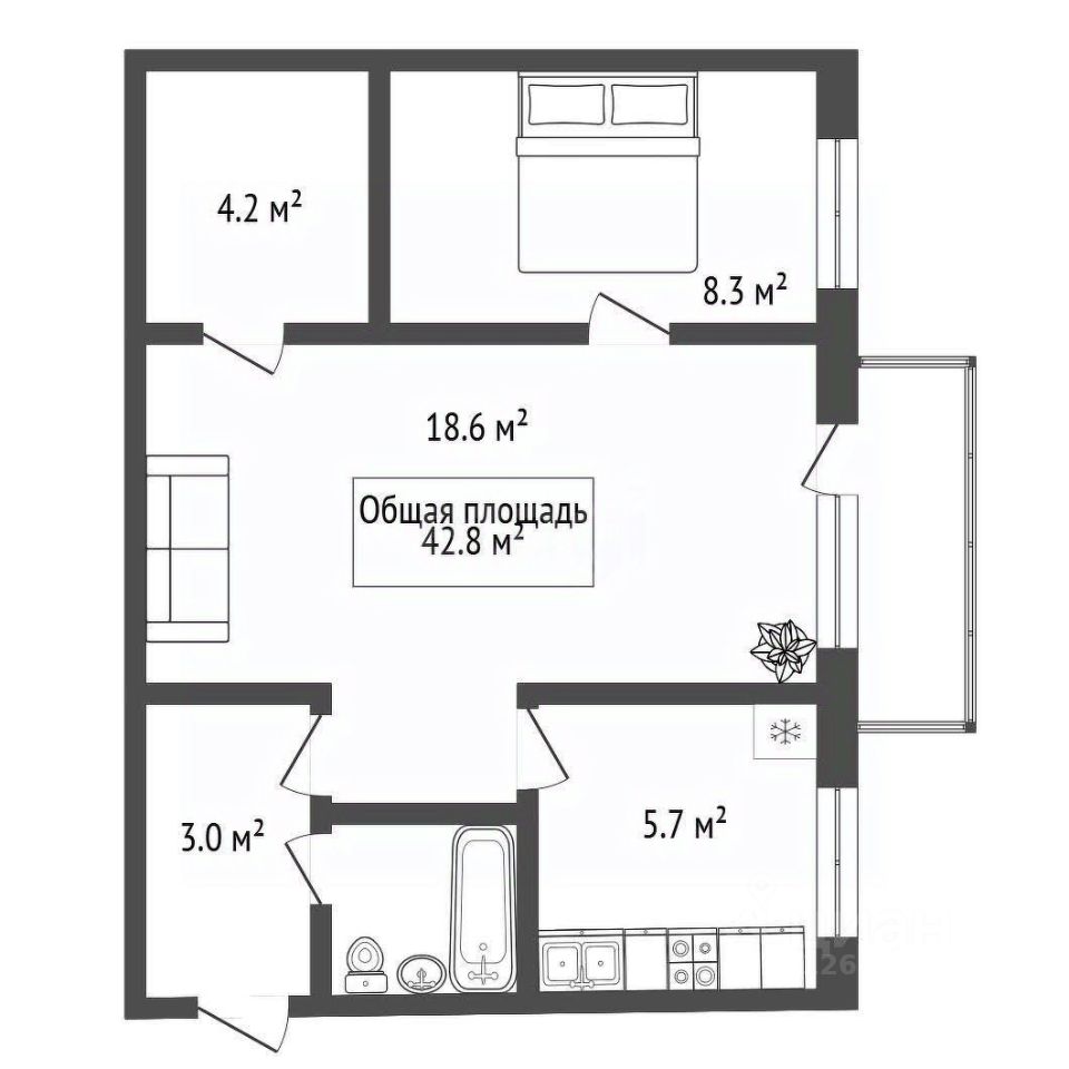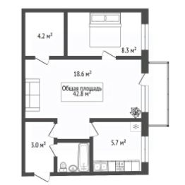 Просторная, светлая квартира 42.8 м² в капитальном кирпичном доме расположена на комфортном среднем этаже.