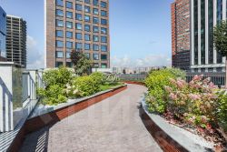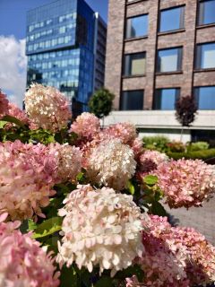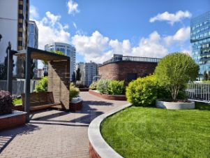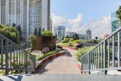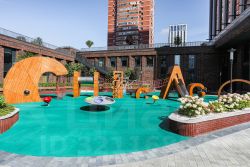 В ЖК уютная, обособленная придомовая территория с множеством зелени. На первом уровне детский городок с горками, качелями, песочницей и зона активных игр с универсальным спортивным полем 24х12 м. Второй уровень терраса, утопающая в зелени и благоухании кустов гортензий, с беседками, качелями, скамейками предназначенная для общения и отдыха. Тихие и шумные зоны двора намеренно разнесены по уровням для максимального комфорта жильцов. Также жильцам этого комплекса круглосуточно доступны тренажерный зал и детская игровая, где можно посмотреть мультфильмы, поиграть в настольные игры или поваляться на подушках.