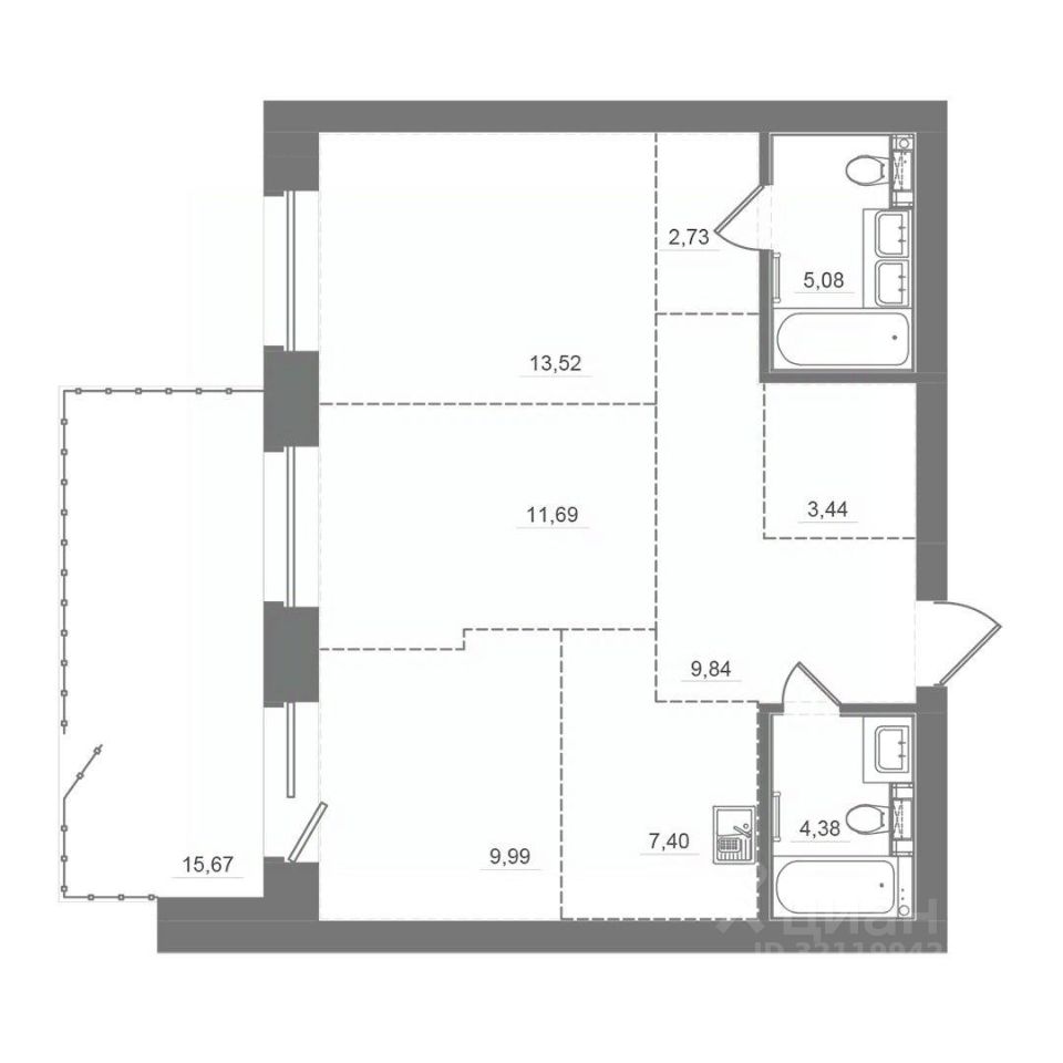 Общая площадь67,46 м²