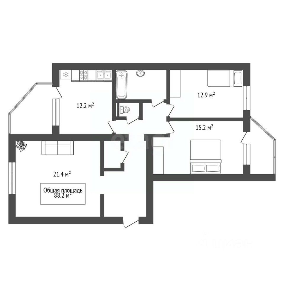 Квартира улучшенной планировки — 88,2 м²