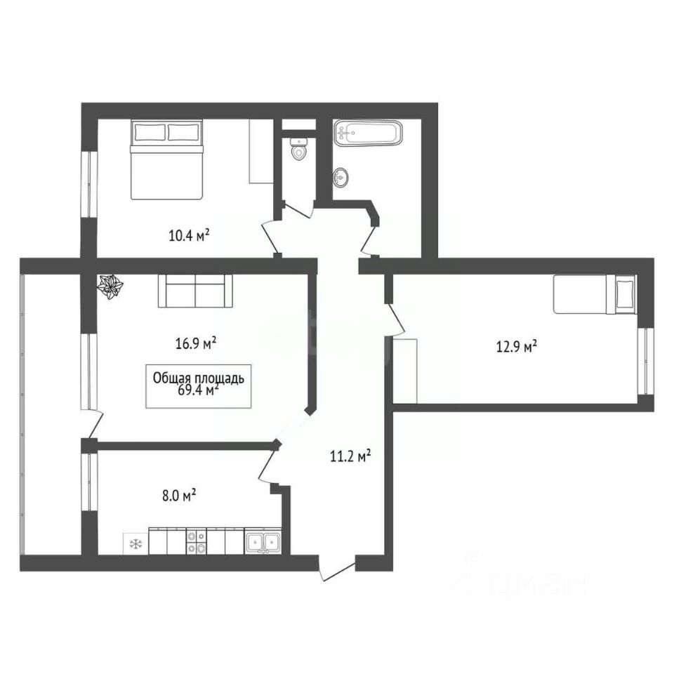В квартире остается кухонный гарнитур с техникой, холодильник и шкафы-купе в коридоре и комнате.