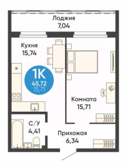 Общая площадь45,72 м²