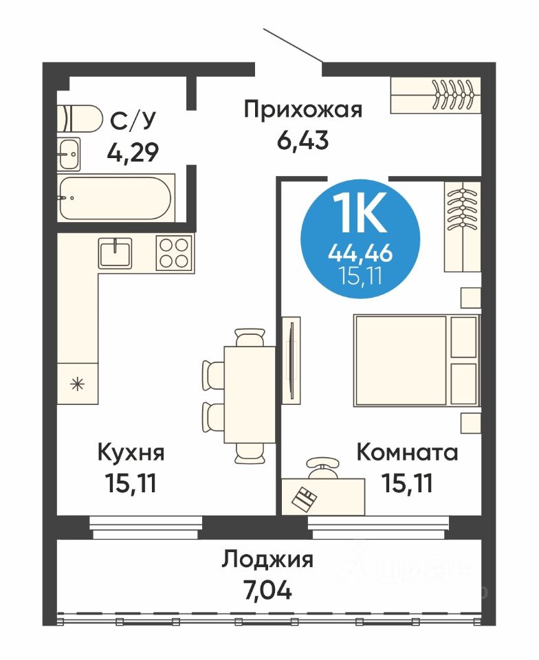 Общая площадь44,46 м²