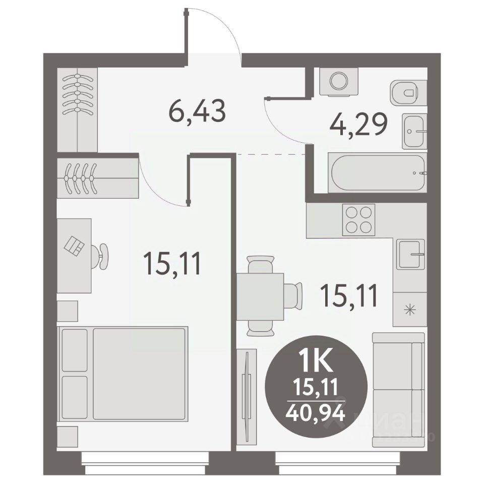 Общая площадь40,94 м²