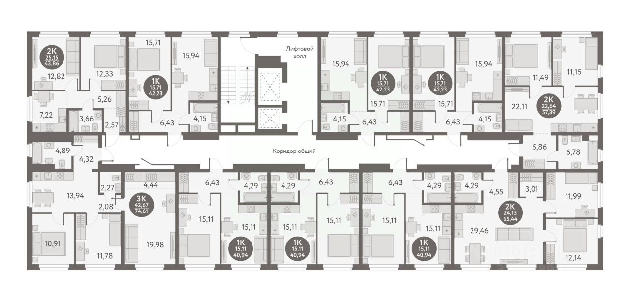 Жилая площадь42,7 м²