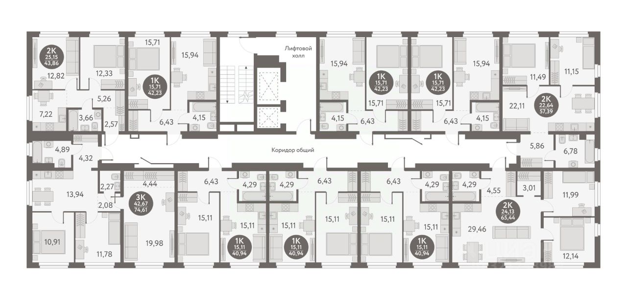 Общая площадь42,23 м²