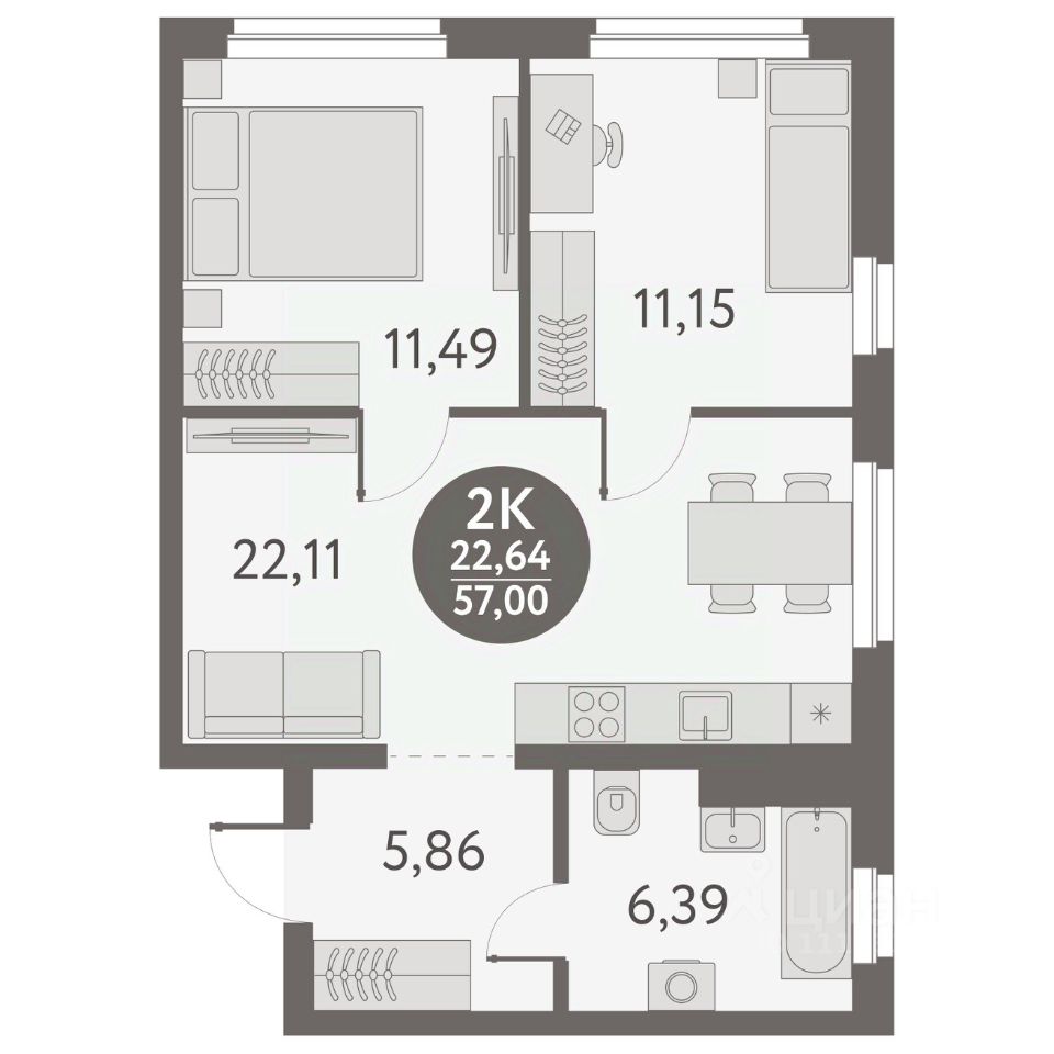 Общая площадь57 м²