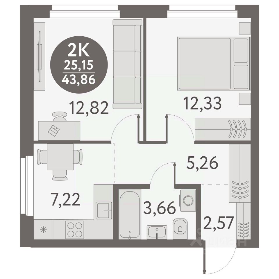 Общая площадь43,86 м²