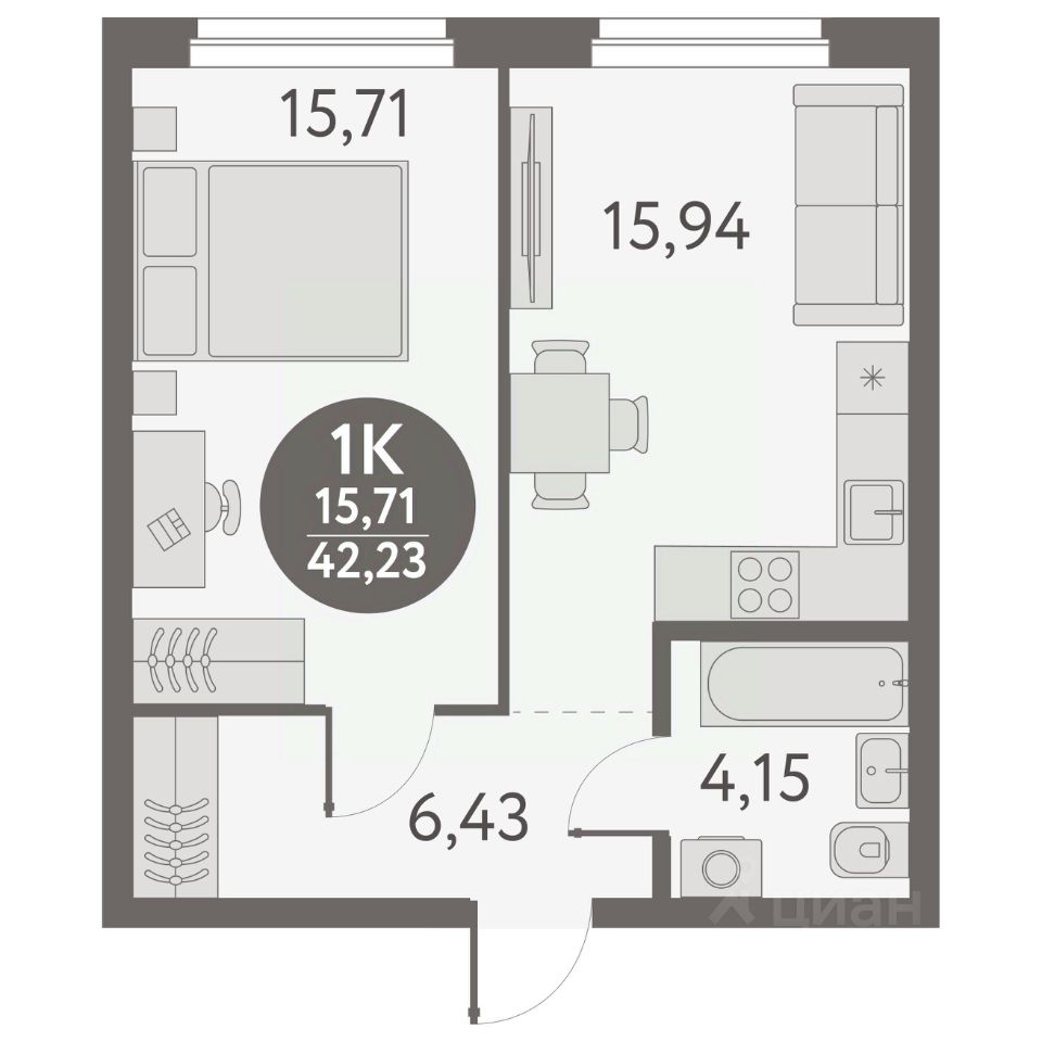 Общая площадь42,23 м²