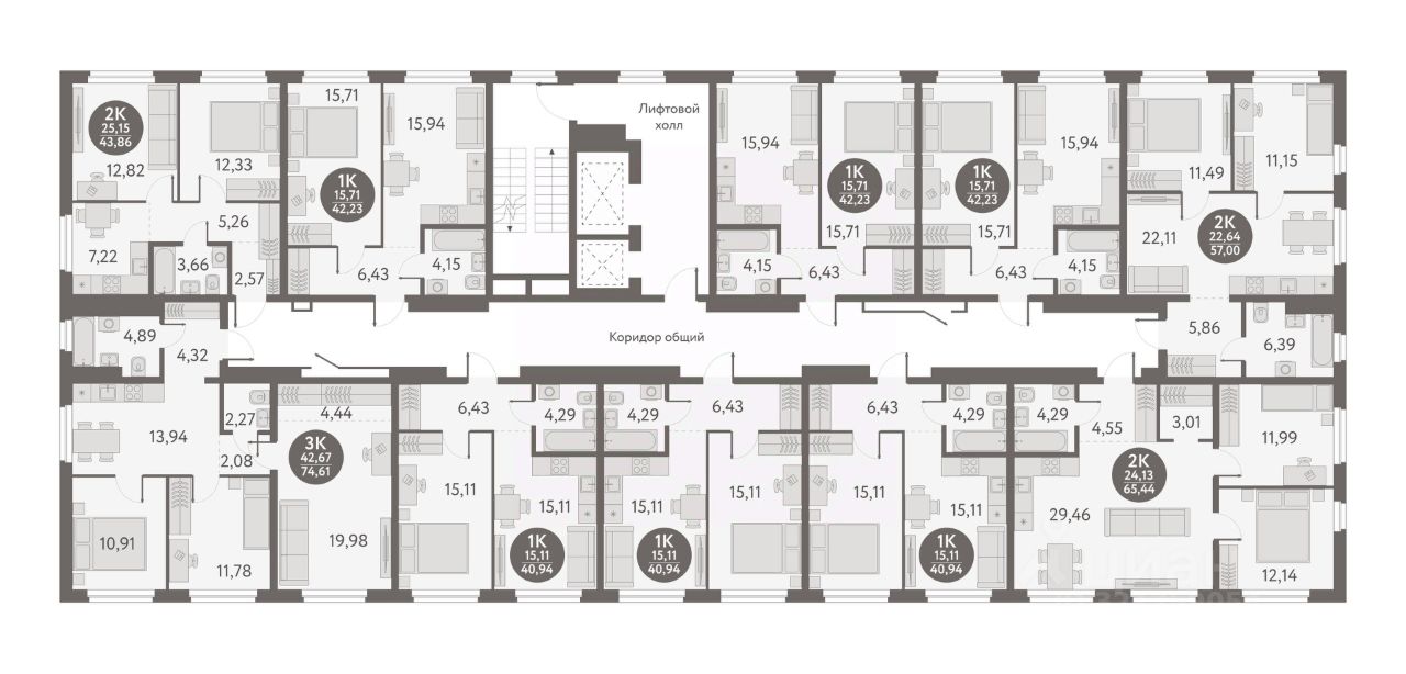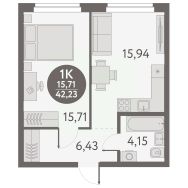Общая площадь42,23 м²