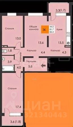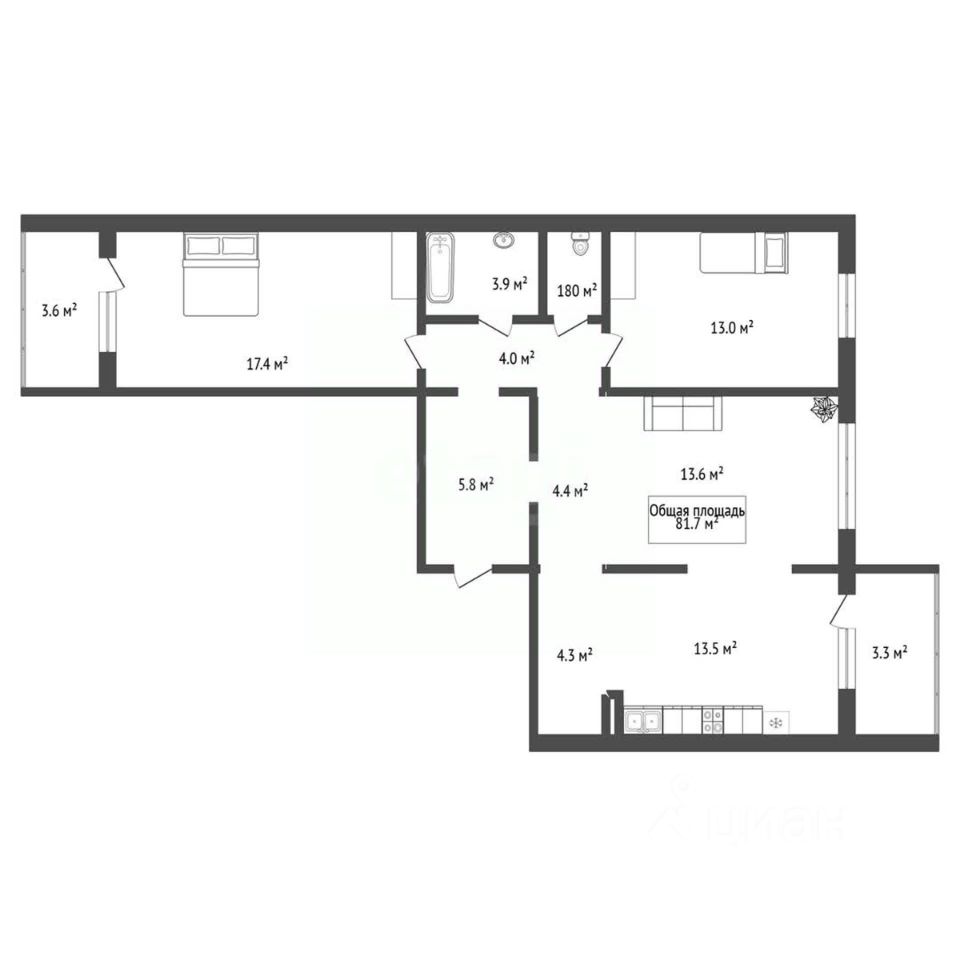 Просторная трехкомнатная квартира площадью 81,5 кв. м расположена на 8 этаже современного 17-этажного дома, сданного в эксплуатацию в 2020 году.