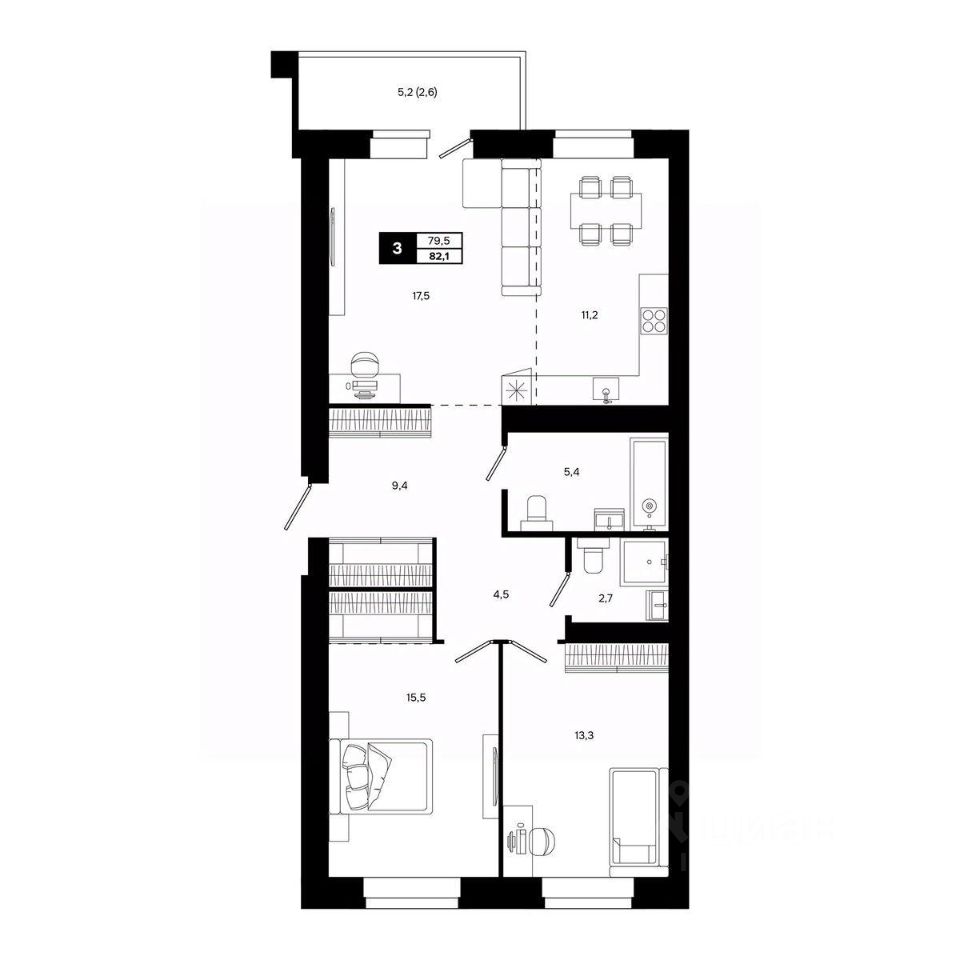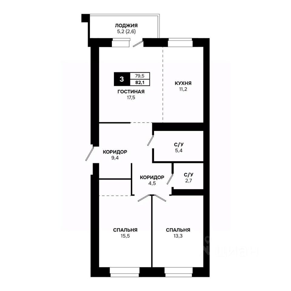Общая площадь82,1 м²