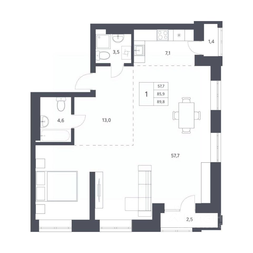 Продается 1-комн. студия с отделкой White box. Квартира расположена на 10 этаже 11 этажного монолитно-кирпичного дома в клубном комплексе "Новаторы" от группы компаний "Поляков".