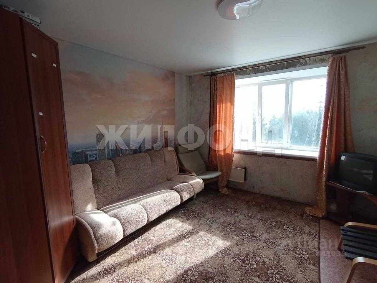 Состояние хорошее, в комнате установлено новое пластиковое окно, натяжной потолок, хорошая входная дверь, линолеум на полу, стены подготовлены под обои.