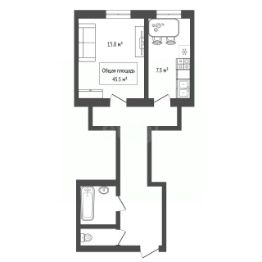 Продается просторная 1-к квартира в Октябрьском районе 45,5 м2.