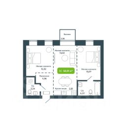 Общая площадь58,91 м²