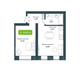 Общая площадь44,35 м²