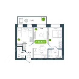 Общая площадь59,86 м²