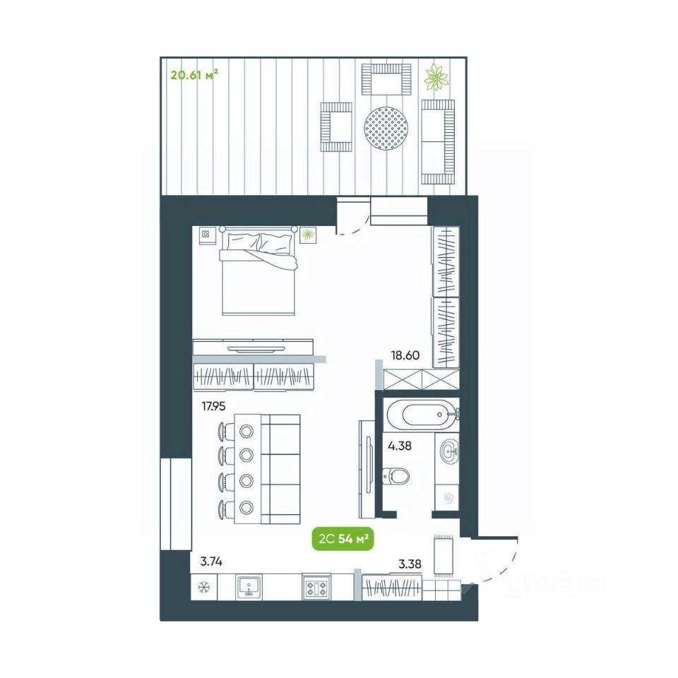 Общая площадь54,15 м²