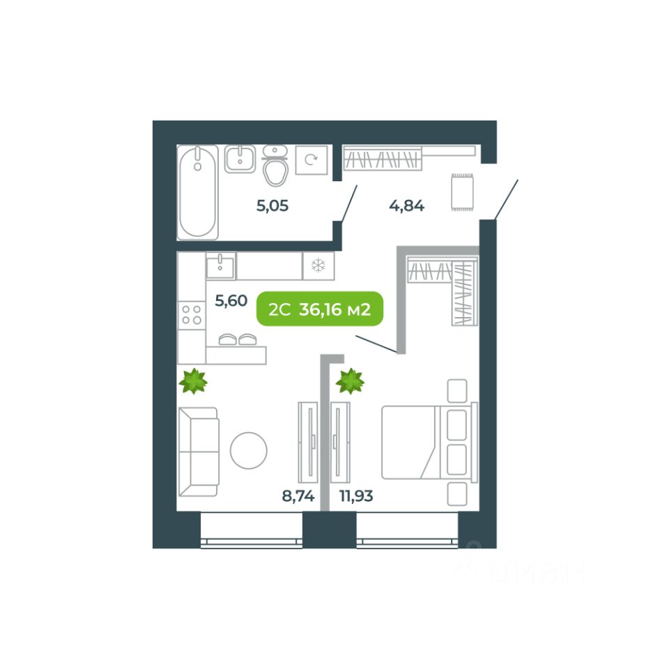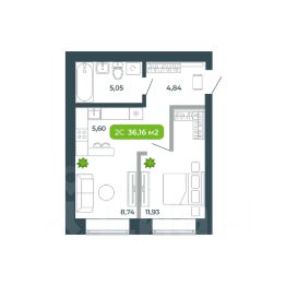 Общая площадь36,16 м²