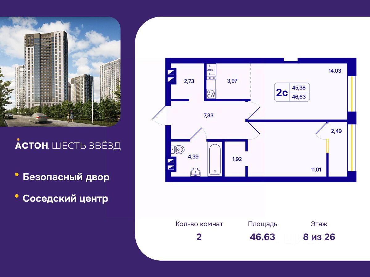 "Астон.Шесть звезд" - современный комплекс из 26-этажных домов класса "комфорт плюс" с уютными квартирами, вдохновляющими видами на левобережье, продуманной организацией жилого пространства, стильным дизайном общественных интерьеров и авторским благоустройством.