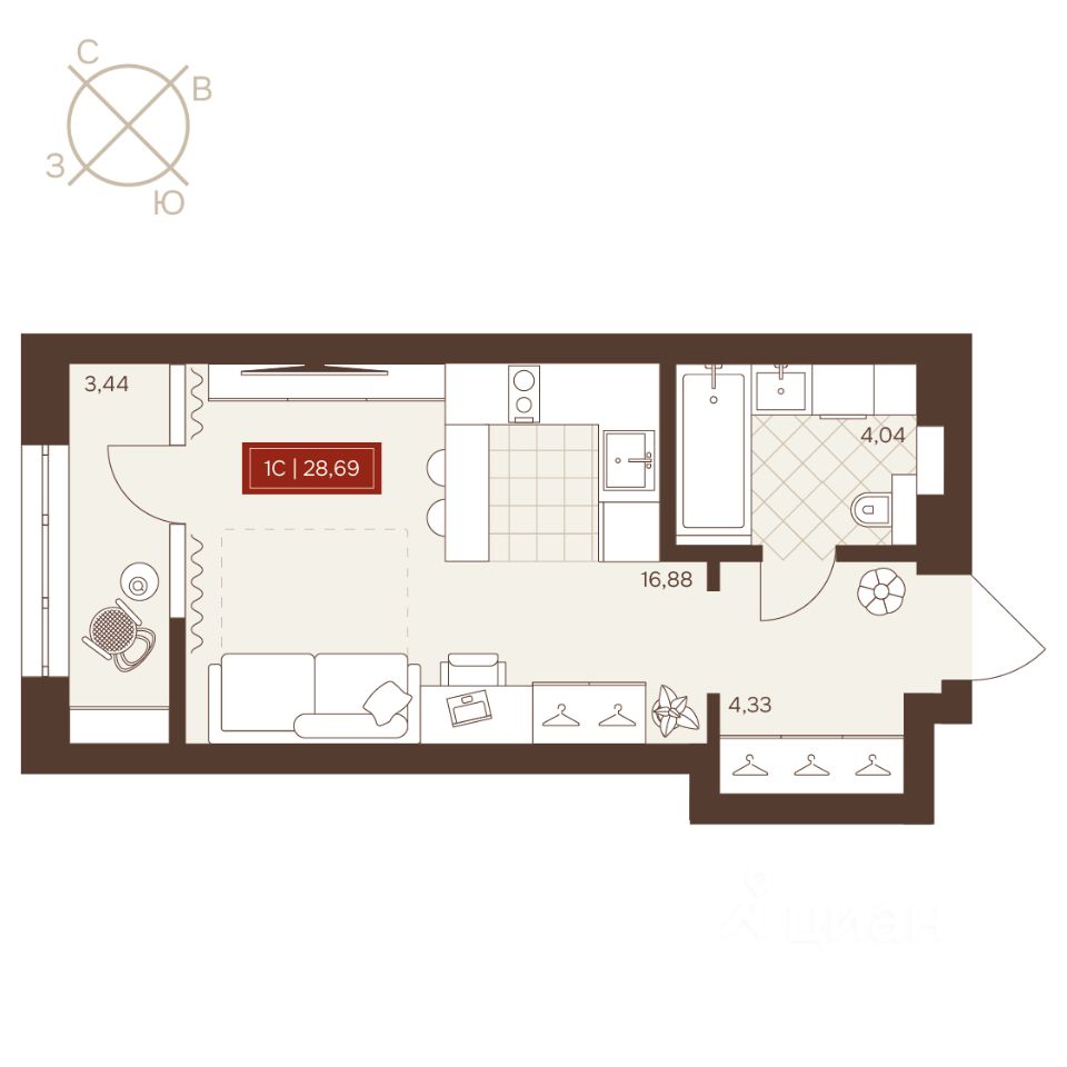 Общая площадь28,67 м²