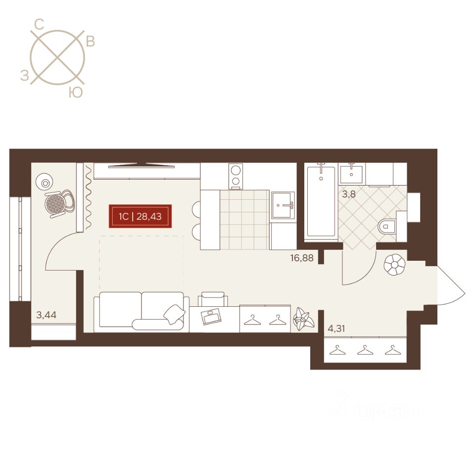 Общая площадь28,6 м²