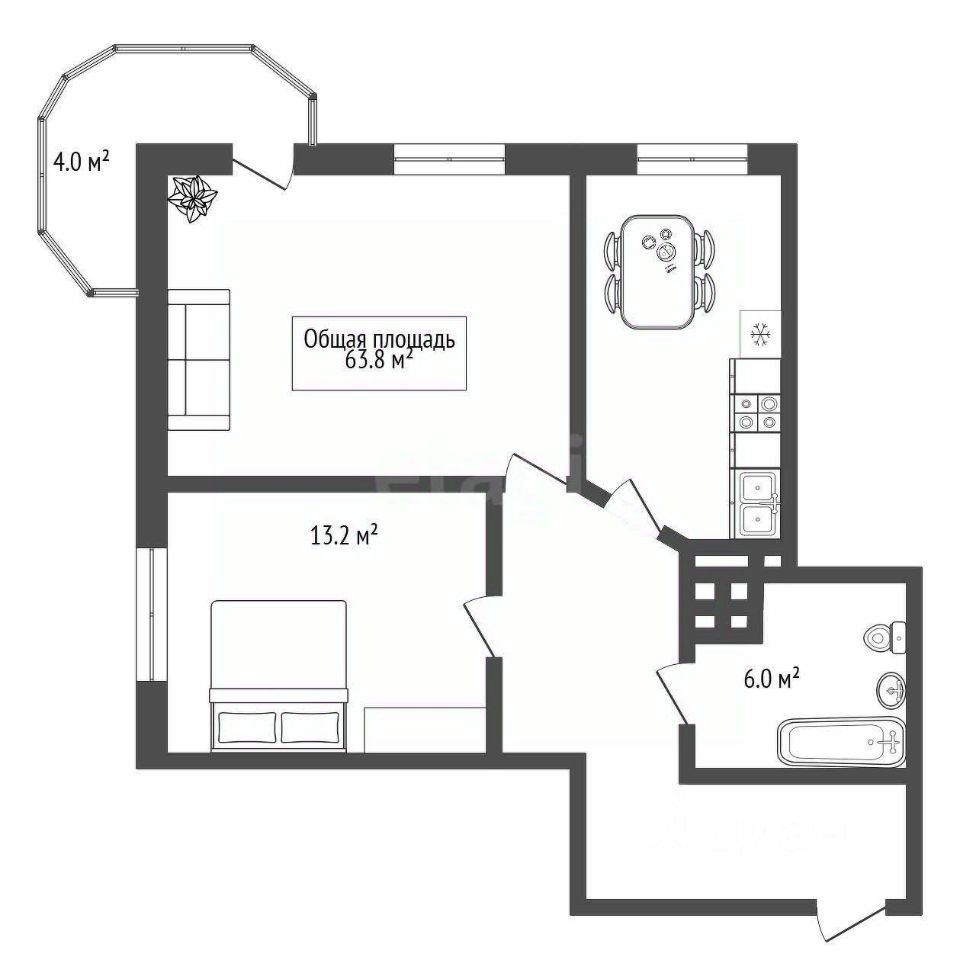 Общая площадь 68 кв.м (с учетом балкона)