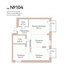 Продаётся 4-комнатная квартира в строящемся доме (Дом 18 - Блок А), срок сдачи: II-кв. 2028, общей площадью 83.1 кв.м., на 5 этаже. Эко-квартал FLORA & FAUNA" - жилой комплекс премиум-класса в Заельцовском бору на берегу Оби в 15 минутах от площади Калинина..