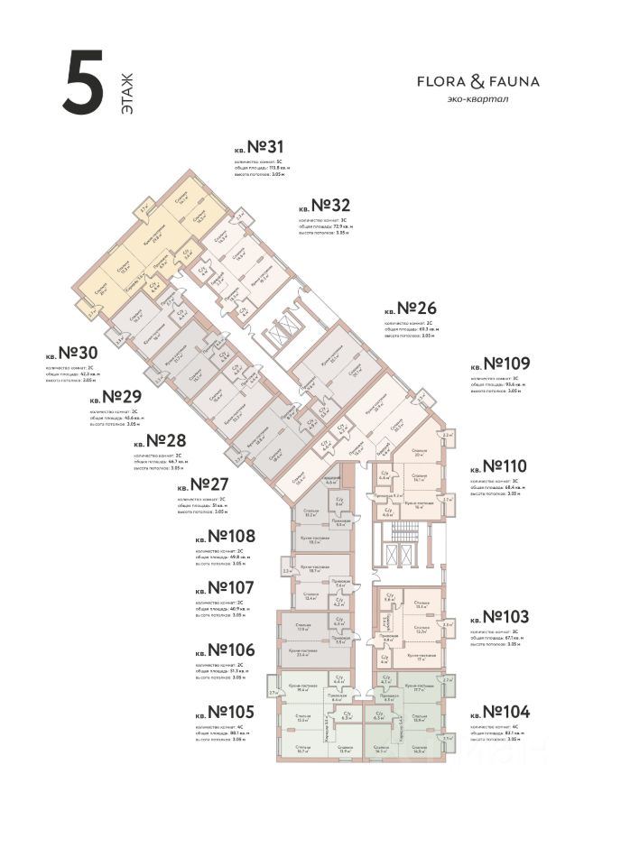 FLORA & FAUNA - это европейский архитектурный проект с просторными функциональными планировками квартир. Высота потолков 3 м даёт ощущение пространства и воздуха, а большие панорамные окна усиливают этот эффект.