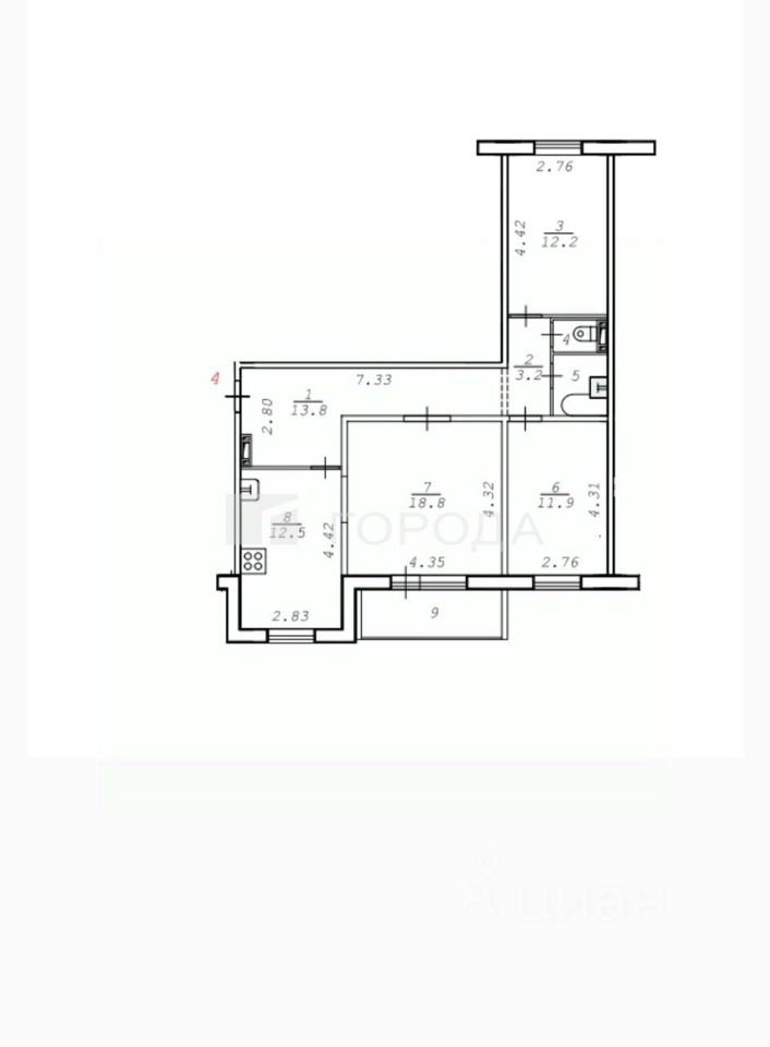 Квартира расположена на десятом этаже десятиэтажного панельного дома, построенного в 2017 году. Общая площадь — 75,8 кв. м, из которых 42,9 кв. м — жилая площадь, 12,7 кв. м — кухня. В квартире евроремонт, комнаты изолированные, окна выходят на улицу.