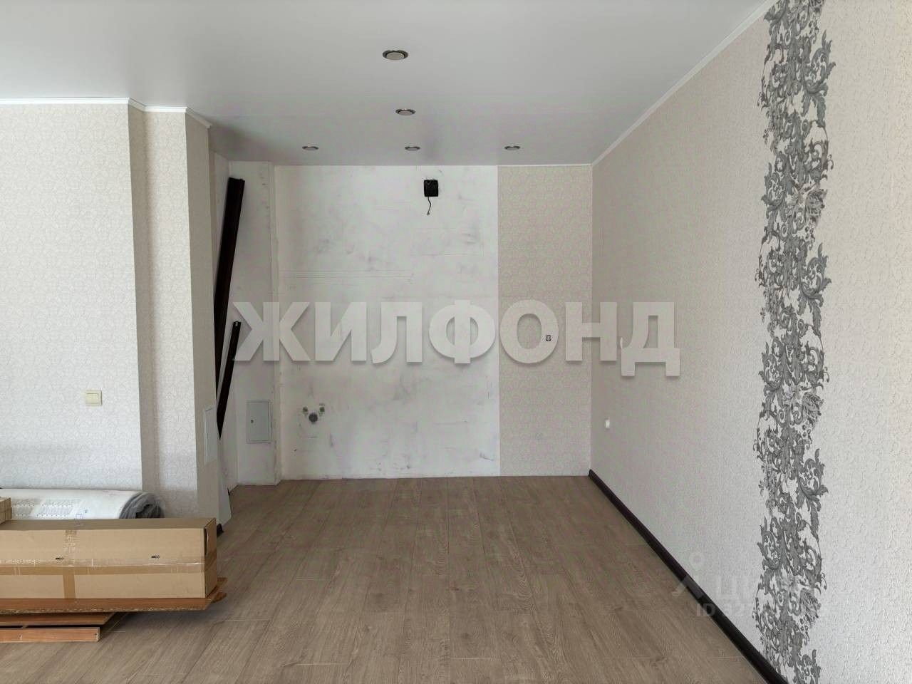 Квартира с частичным ремонтом: кухня- гостинная, санузел и прихожая-готовы к проживанию (натяжные потолки, обои на стенах, ламинат и плитка на полу). В спальне нужно закончить стены, остальное все сделано.