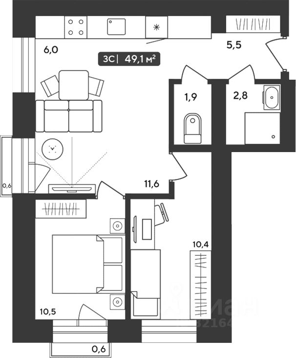 Общая площадь48,74 м²
