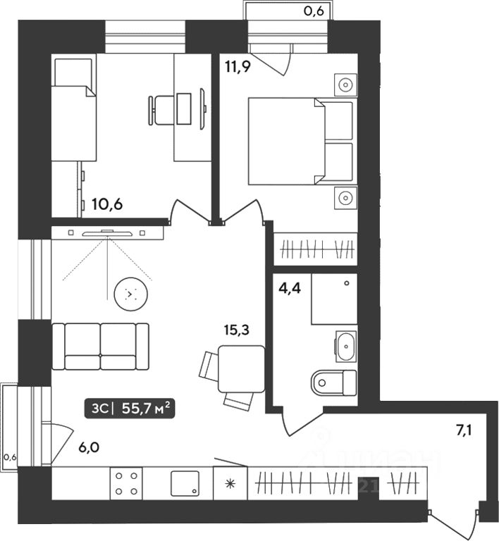 Общая площадь55,34 м²