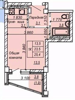25,4 м²