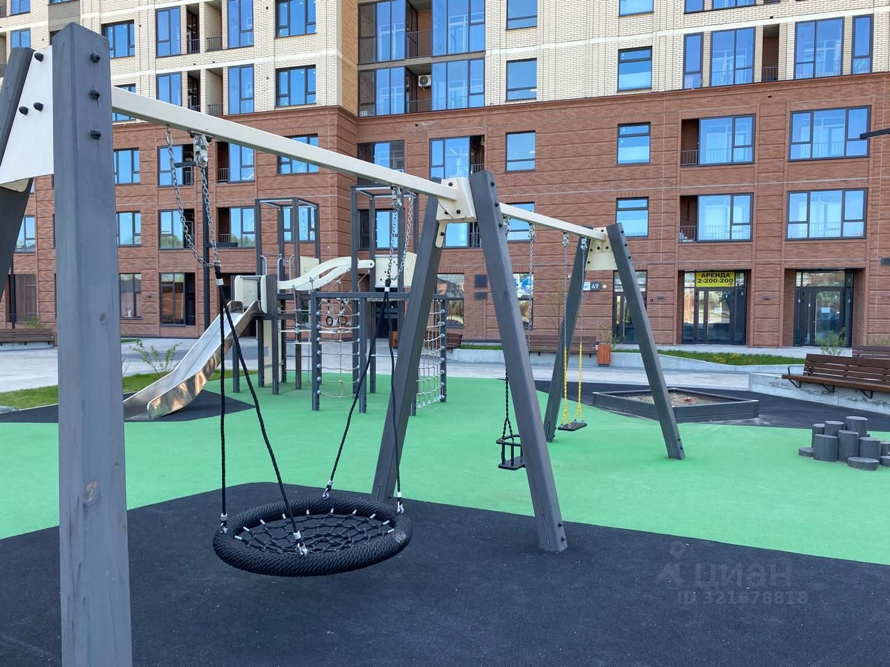 Отличная детская площадка с мягким прорезиненным покрытием!