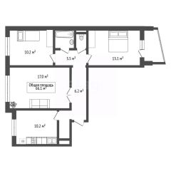 Квартира имеет 3 большие раздельные комнаты,