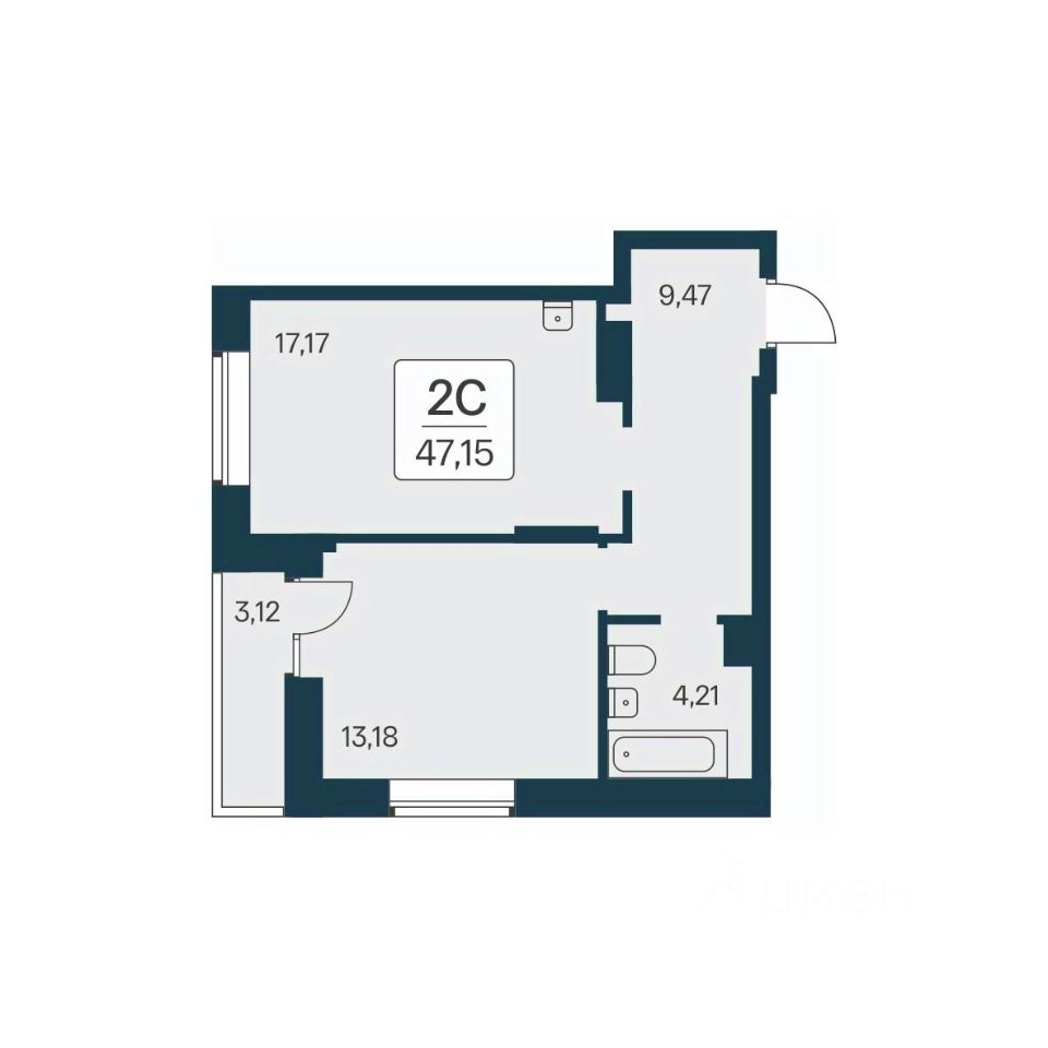 "В продаже 2-комнатная квартира, площадью 47.15, под номером 539 в новом Доме ЖК "Квартал на Игарской"." Жилой квартал "Расцветай на Игарской" - это счастливая жизнь в тихом и уютном квартале с увлекательным двором-парком!