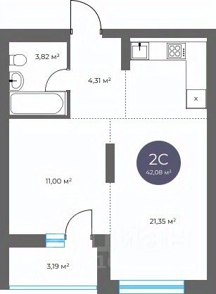 Общая площадь42,08 м²