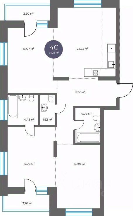 Общая площадь94,16 м²