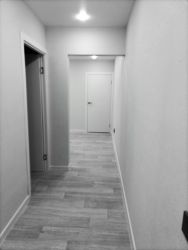 Квартира после капитального ремонта. Заменена проводка и трубы. Все окна пластиковые. Натяжные потолки. Новый линолеум и двери. Стены выровнены. Обои под покраску белого цвета. Классический серый цвет кафеля в ванной и в туалете. В санузле пол с подогревом. После ремонта никто не жил.