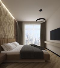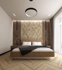 -Дорогостоящие шпонированные панели в спальне;