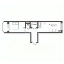 Кухня-гостиная 20 кв.м2 и комната 14 кв.м2