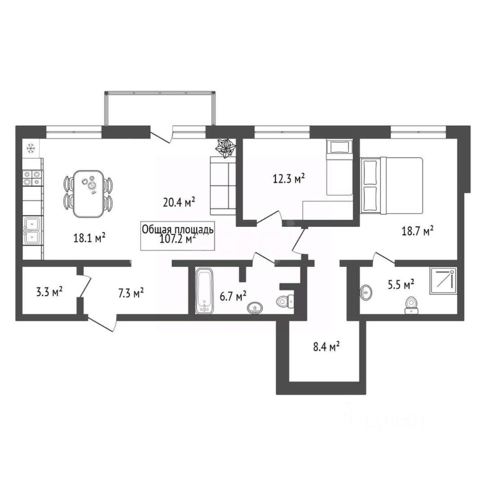 Планировка квартиры продумана до мелочей. Все идеально сделано для комфортного проживания.