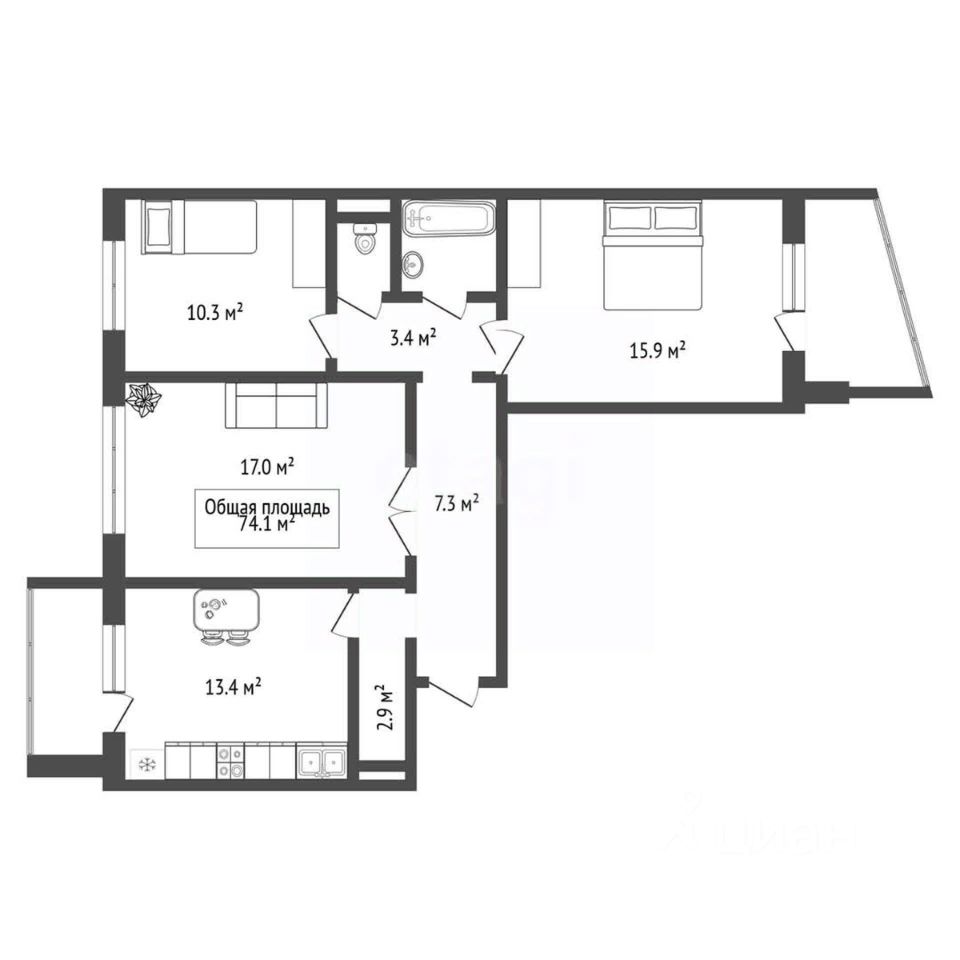 Квартира расположена на среднем, комфортном этаже, с очень привлекательным видом как в одну строну, так и в другую. Очень просторная кухня, и большие спальни, две остекленные лоджии!