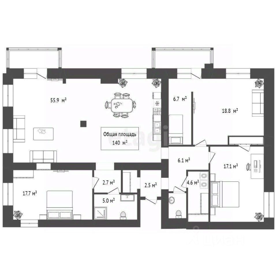 140 м²