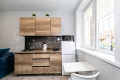 Пpоcтоpная кухня с необходимой техникой, стильная гостиная и уютная спальня создают комфортное пространство для жизни.