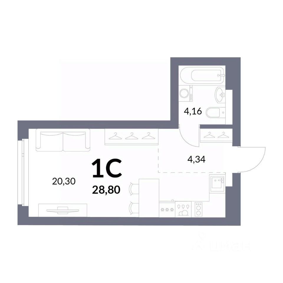 Общая площадь28,8 м²