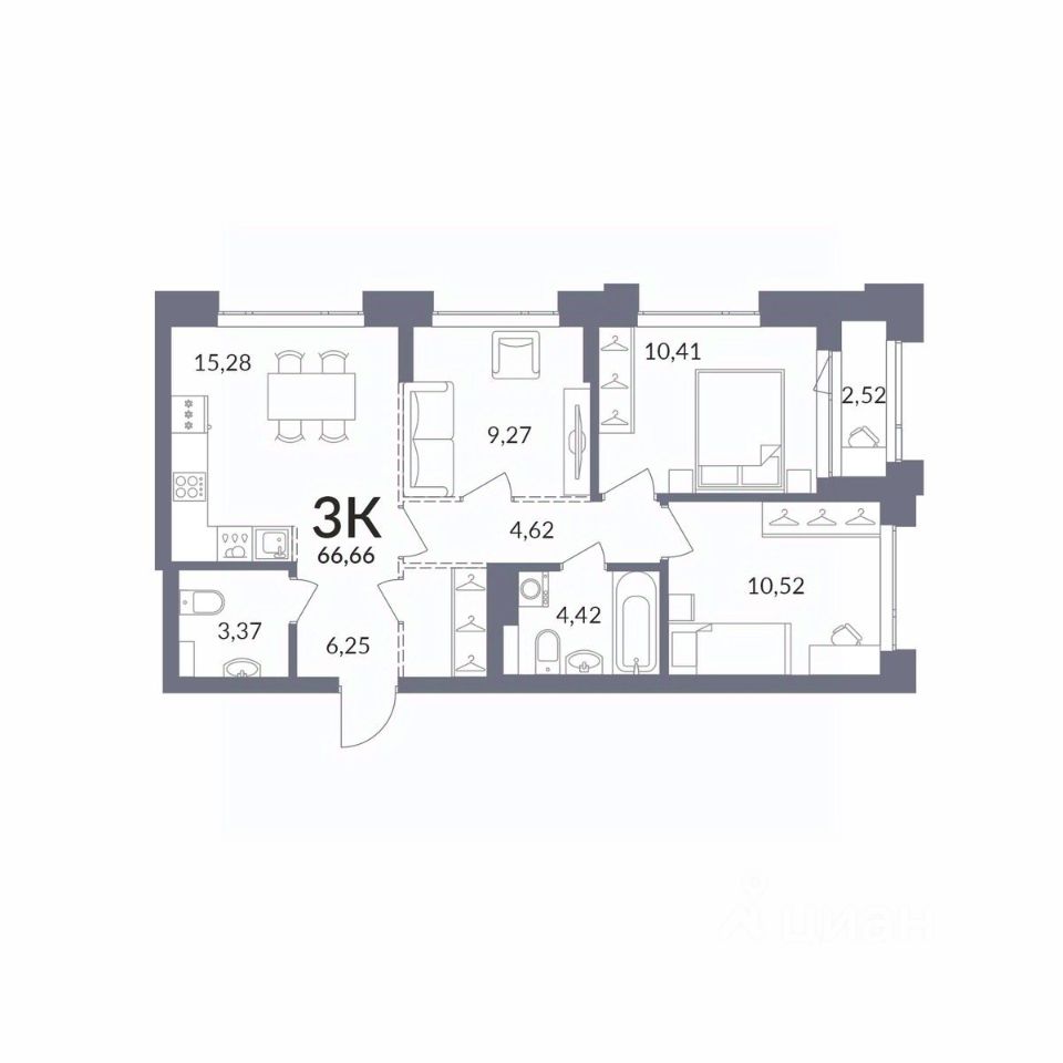 Общая площадь66,66 м²