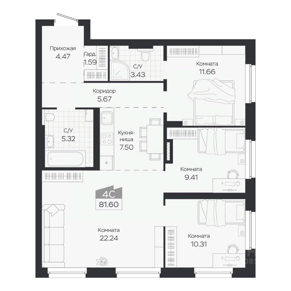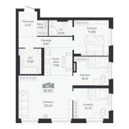 Продаётся 4-комнатная квартира в строящемся доме (Дом 3), срок сдачи: IV-кв. 2027, общей площадью 81.6 кв.м., на 7 этаже. Новый жилой комплекс "Базилик" от застройщика "Группа Мета" расположен в рп. Краснообск Новосибирской области на ул. Восточная.